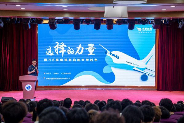 华夏云翼国际教育科技有限公司人力资源总监王成宇作为特邀嘉宾带来分享,他从企业发展历程、职业发展路径、公司业务布局等方面全面介绍华夏云翼,同时勉励新生们在理论学习与实践应用中提升专业能力,注重品德修养,坚信“选择”对个人成长的重要意义。