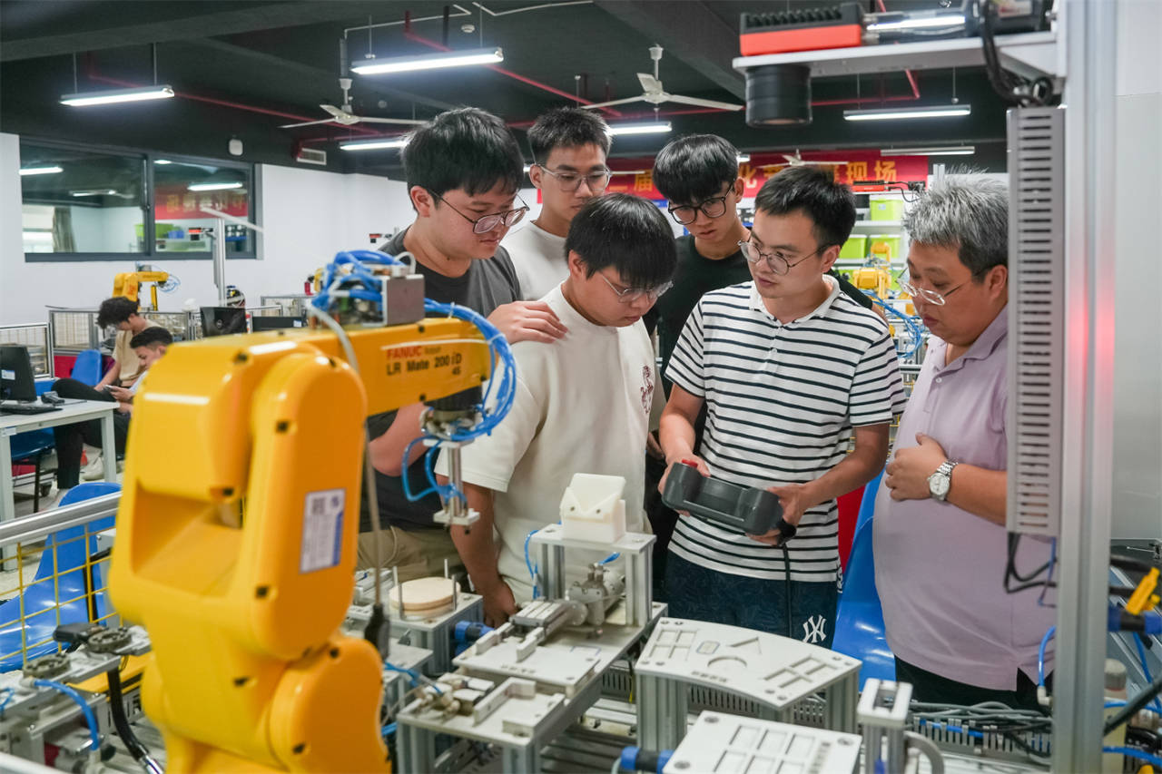4月17日,马来西亚拉曼技职学院第二批23名留学生抵达衢职院,开始了为期2个多月的工业机器人专业国际学生培养项目学习。衢职院通过以“技术+文化”双轨培养体系为核心,携手马来西亚拉曼技职学院,为同学们打造了兼具专业深度与文化厚度的学习之旅。培训期间,学生们通过CAD机械设计、液压与气压传动等课程筑牢专业根基,聚焦工业机器人编程与仿真等前沿技术精进技能,借助逆向工程、钳工实训提升动手能力。