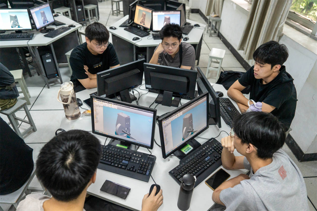 留学生们认真学习CAD机械设计课程。