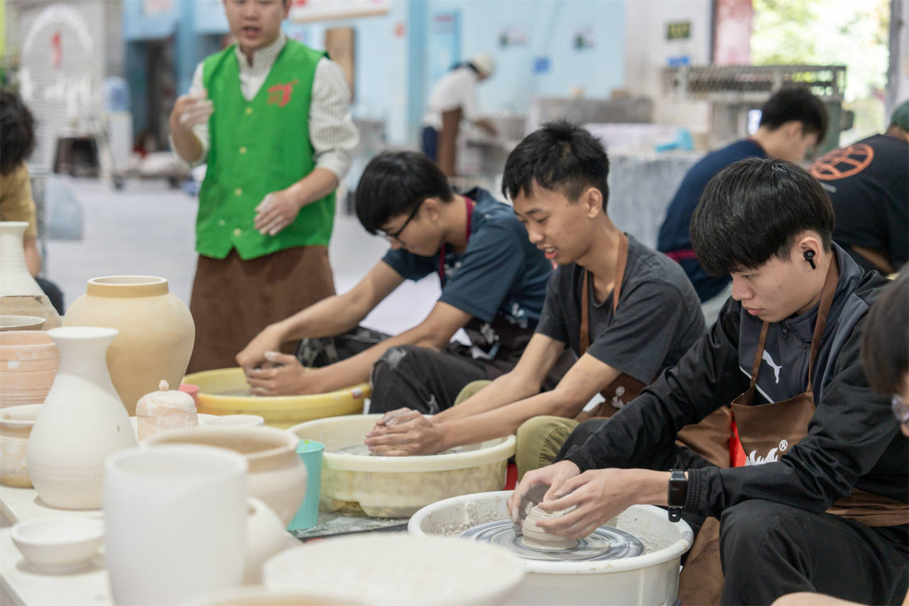留学生们体验中国传统非遗项目莹白瓷制作技艺。