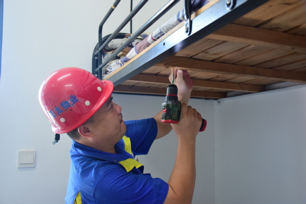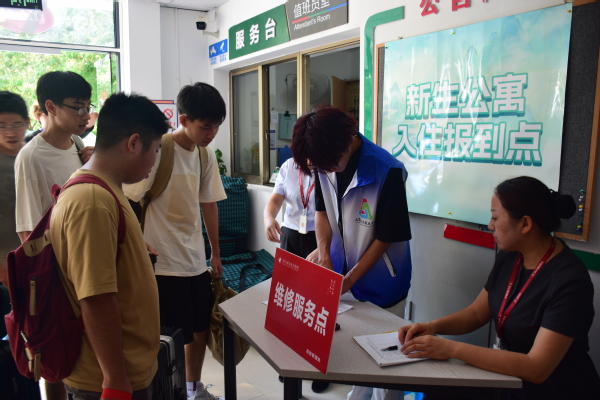 学校在各个寝室楼下设立了维修服务站点,方便新生第一时间解决设施问题。