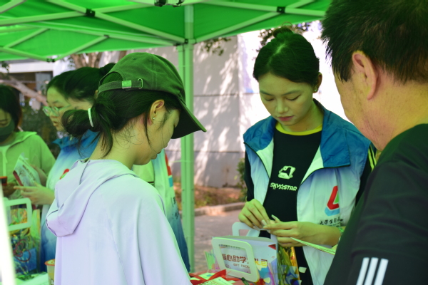 学校也为2025级的新生们设立了“新生绿色通道”。在“解锁校园新生活”爱心礼包申领点,新生和家长手持刚领取的爱心礼包,脸上洋溢着欣喜。旁边也设立了新生资助政策咨询处,志愿者们细致地讲解着各项资助政策,为有需要的学子铺就顺畅的求学路。