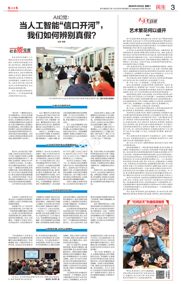 当下,全社会掀起探索AI技术、运用AI提升生活与工作质量的热潮,AI正逐渐成为撬动大众创造力的有力杠杆。但张丽娜特别强调:“掌握AI正确使用方法,学会识别和应对AI幻觉现象同样至关重要。”