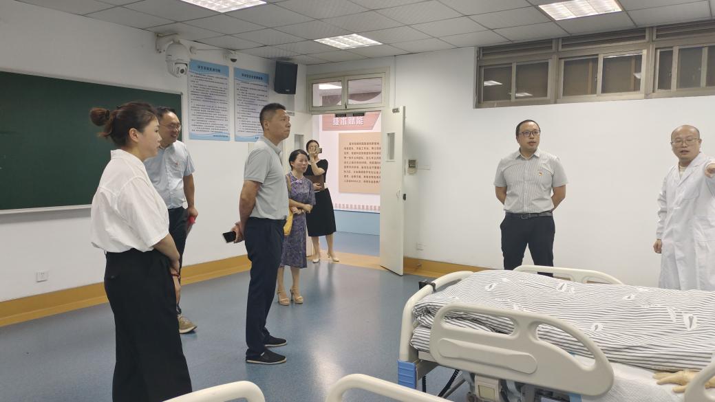 会前,占霖森等一行还参观了医学院医学实训楼及大健康公共实训中心。参观过程中,双方围绕实训基地建设、教学设备配置、虚拟仿真教学模式及大健康产业实践教学融合等内容展开深入交流,为后续合作找准了“结合点”。