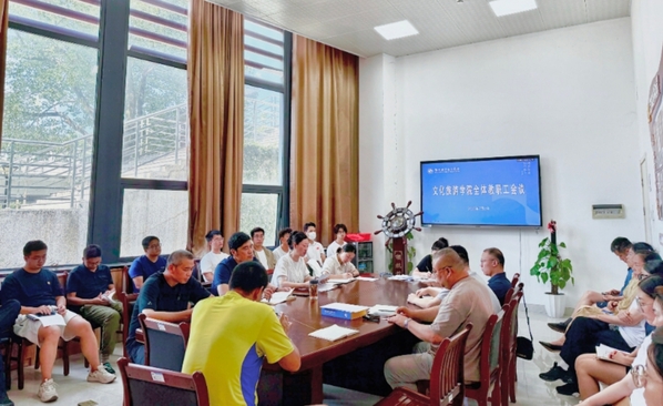 7月2日上午,文化旅游学院召开期末工作会议。院长郭大勇主持并讲话,党总支书记李威传达学校期末工作会议精神,副院长黄志国、彭晓倩,副书记邵翔布置暑期重点工作和下学期开学相关工作,学院全体教职工参会。