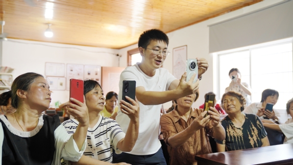 活动以“数字赋能”为核心,党员师生们充分发挥专业特长,为泉井边村村民带来了一场别开生面的数字技能学习盛宴。在《手机短视频拍摄与制作》场景教学中,艺术设计学院第二党支部书记何敬带领师生党员志愿者们,深入浅出地讲解短视频拍摄的构图技巧、运镜方式和剪辑方法。通过现场演示和一对一指导,帮助村民掌握用手机记录生活、宣传家乡的技能,为乡村旅游宣传提供了新的思路与方法,切实将数字技术转化为乡村发展的新动能。
