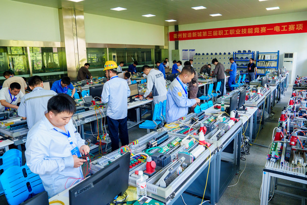 为推动产业工人队伍建设改革,大力弘扬劳模精神、劳动精神、工匠精神,8月7日至8月8日,衢州智造新城第三届职工职业技能竞赛在我校顺利举办。本次竞赛共吸引智造新城辖区内43家企业的131名选手在机修钳工、数控铣工、电工以及叉车工四个项目中展开同台竞技。四个项目共决出一等奖4名、二等奖8名、三等奖12名及优胜奖28名。其中,一等奖选手将被授予技师等级,并获评“衢州市技术能手”和“衢州市金牌职工”称号,其他奖项选手将获评高级工等级。