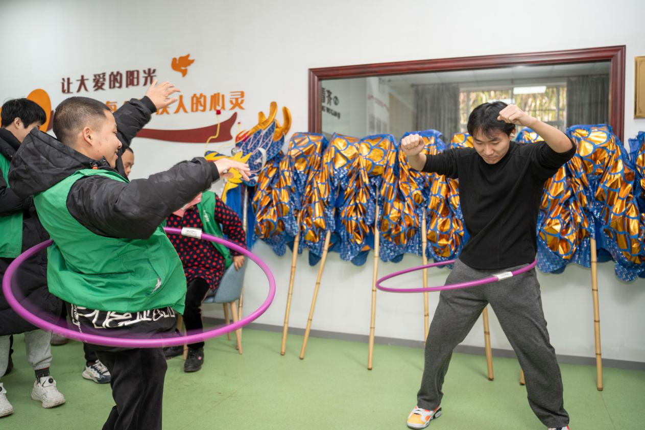 在游戏互动环节中,投壶、套圈和呼啦圈比赛大家踊跃尝试。其中,舞狮环节引发阵阵喝彩。通过这些游戏不仅带来快乐,更搭建起一座友谊桥梁,让温暖与爱流淌在彼此心间。