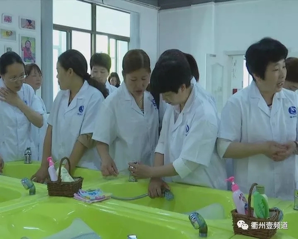 在实训基地的另一边,婴儿沐浴、抚触等项目也吸引了不少市民参与。