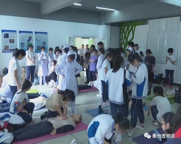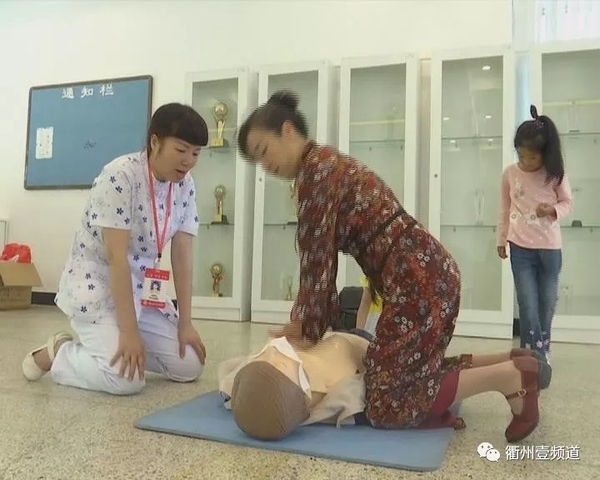 在衢职院医学院实训基地里,市民周美玲正在职院专业老师的指导下学习心肺复苏术,虽然是第一次实践操作,但是姿势正确动作规范。市民周美玲告诉记者,现在身边的老人比较多,在防灾减灾日这一天学习心肺复苏这一抢救技能,很有意义。