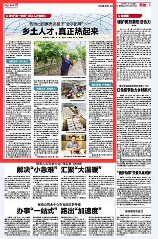 《浙江日报》2018年5月7日 报道 本报记者 万笑影 吴勇 通讯员 叶丽丽 杨洋 叶慧菲