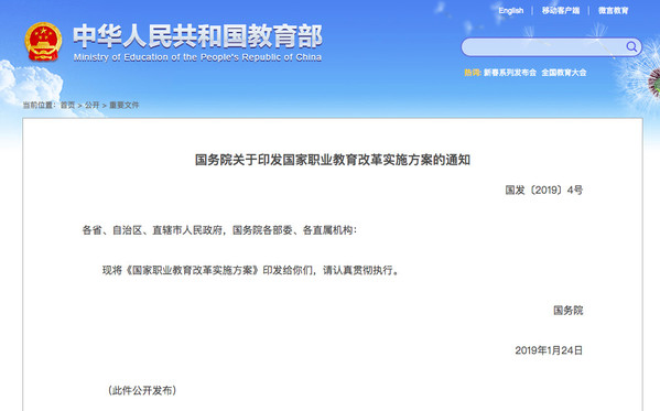 近日,国务院印发《国家职业教育改革实施方案》(以下简称《方案》)。