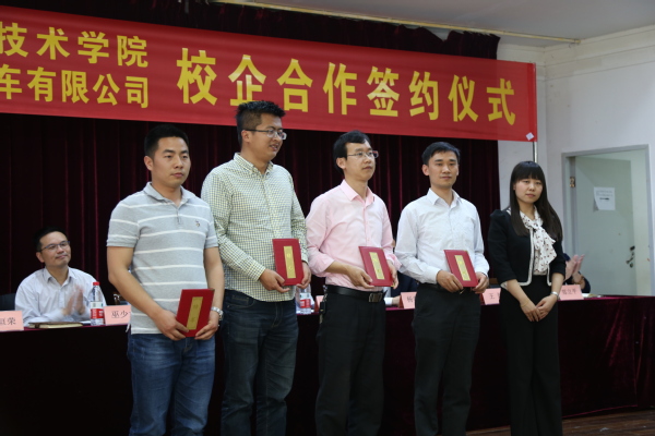 随后,黄云龙代表学校与企业代表共同签署了校企合作协议,并为衢州职业技术学院、浙江吉利汽车有限公司联合办学基地揭牌。机电工程学院院长巫少龙与吉利汽车整车试制中心人事经理王婕分别为企业兼职教师和学校任课教师互发聘书。校企双方将会积极加强彼此之间的联系与合作,共同发展,互利互惠,使双方合作结出更多丰硕成果。