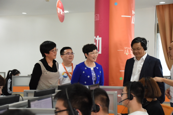 胡旭阳一行先后参观了我校“书香四溢”阅读驿站、医学院母婴护理实训室、衢职·阿里巴巴客户体验实训基地等。在参观阿里巴巴客户体验实训基地时,胡旭阳副部长还饶有兴趣地拿起呼叫耳机,体验了一把“客户体验专员”的感觉。