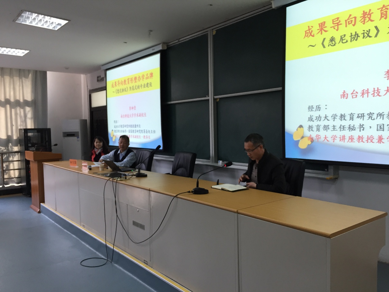 本次培训邀请了著名教育家、台湾南台科技大学学术副校长李坤崇教授和台湾南华大学校长室执行秘书林堂馨讲师来做辅导讲座,李坤崇教授担任主讲。培训内容包括高职教育未来发展趋势、职业教育的目的和性质、成果导向教育理念、学校教育目标的商榷和学校核心能力的修订等方面。