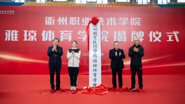 1月6日上午,衢州职业技术学院雅琼体育学院揭牌仪式在校体育馆举行。巴黎奥运会冠军、世界羽毛球混双“大满贯”运动员、衢州城市形象大使黄雅琼受聘为雅琼体育学院名誉院长并为学院揭牌。