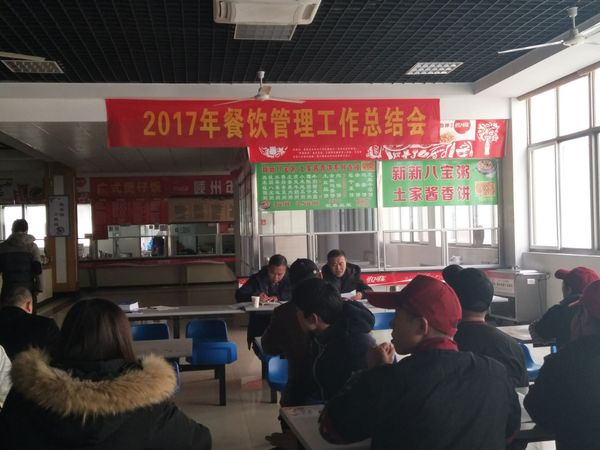 1月29日下午,后勤保卫处在食堂二楼召开2017年餐饮管理工作总结会,后勤保卫处处长姜伟、一食堂负责人吴险峰、二食堂负责人姜爱军、各食堂主管、各岗位负责人20余人参加了会议,会议由餐饮与公共卫生管理科科长汪志祥主持。