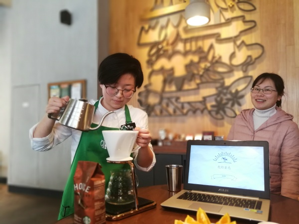 17届应用英语专业毕业生陈简已经在星巴克工作近1年时间,她讲述了自己在星巴克工作期间的心路历程,表达了对这份工作的喜爱之情。她希望更多的学弟学妹们加入“星爸爸”这个年轻的大家庭。交流结束后,陈简为各位老师展示了冲泡咖啡的专业技能。据悉,经济管理学院2018届中有25名毕业生又将成为星巴克的一员。