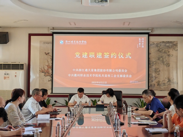 为进一步贯彻落实“七一”期间有关工作要求,助推学校“党建领航发展”走深走实,6月27日下午,学校机关宣传工会党支部与浙江通天星集团股份有限公司党委举行党建联建签约仪式。