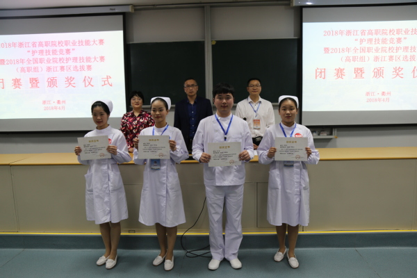 选手们稳定的发挥,赢得裁判高度赞誉。我校6位参赛队员凭借扎实的专业知识、娴熟规范的操作技能,在比赛中全部获奖。其中,由范晓江、吴忠勤老师指导的盛俊艳同学,由吴建军、范晓江老师指导的邵海鸿同学荣获一等奖,倪剑涛、方淑倩、沈燕霞获二等奖、蒋婷婷获三等奖。 2名一等奖选手将代表浙江省参加全国护理技能大赛。
