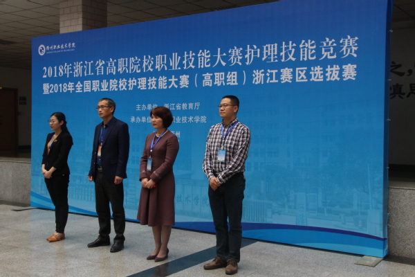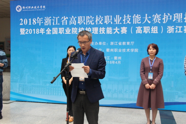 4月21日至22日,2018年浙江省高职院校职业技能大赛护理技能竞赛暨2018年全国职业院校护理技能大赛(高职组)浙江赛区选拔赛在我校隆重举行。大赛裁判长、浙江中医药大学护理学院院长何桂娟教授,浙江省护理学会杨丹主任,衢州职业技术学院党委委员、副校长何百通,医学院院长姚水洪出席开赛式。