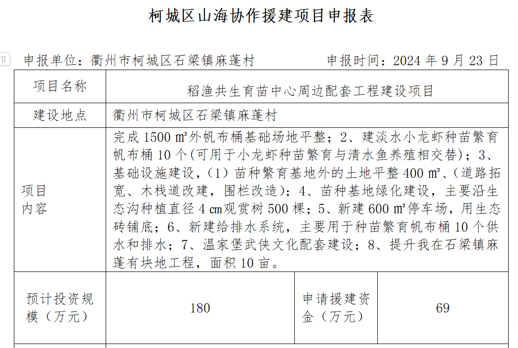 山海协作援建项目申请表