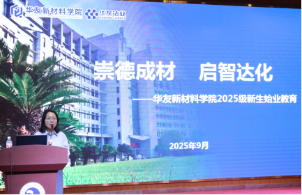 9 月 15 日,华友新材料学院在一号报告厅举行以“崇德成材 启智达化”为主题的2025级新生始业教育暨开学第一课活动。学院院长杨明华,党总支副书记(主持工作)、副院长吴忠以及全体班主任、辅导员、教师参加本次活动。党总支副书记孔慧兰主持。