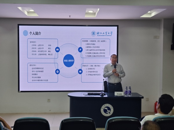 6月9日下午,浙江工业大学体育军训部副主任李海鹏教授、体育军训部杨冬钧副教授来文化旅游学院交流指导。李海鹏作了题为“问渠那得清如许,为有源头活水来——简谈‘科研课题’申报工作”的科研讲座。文化旅游学院院长郭大勇,副院长黄志国、彭晓倩以及学院中青年教师参加。