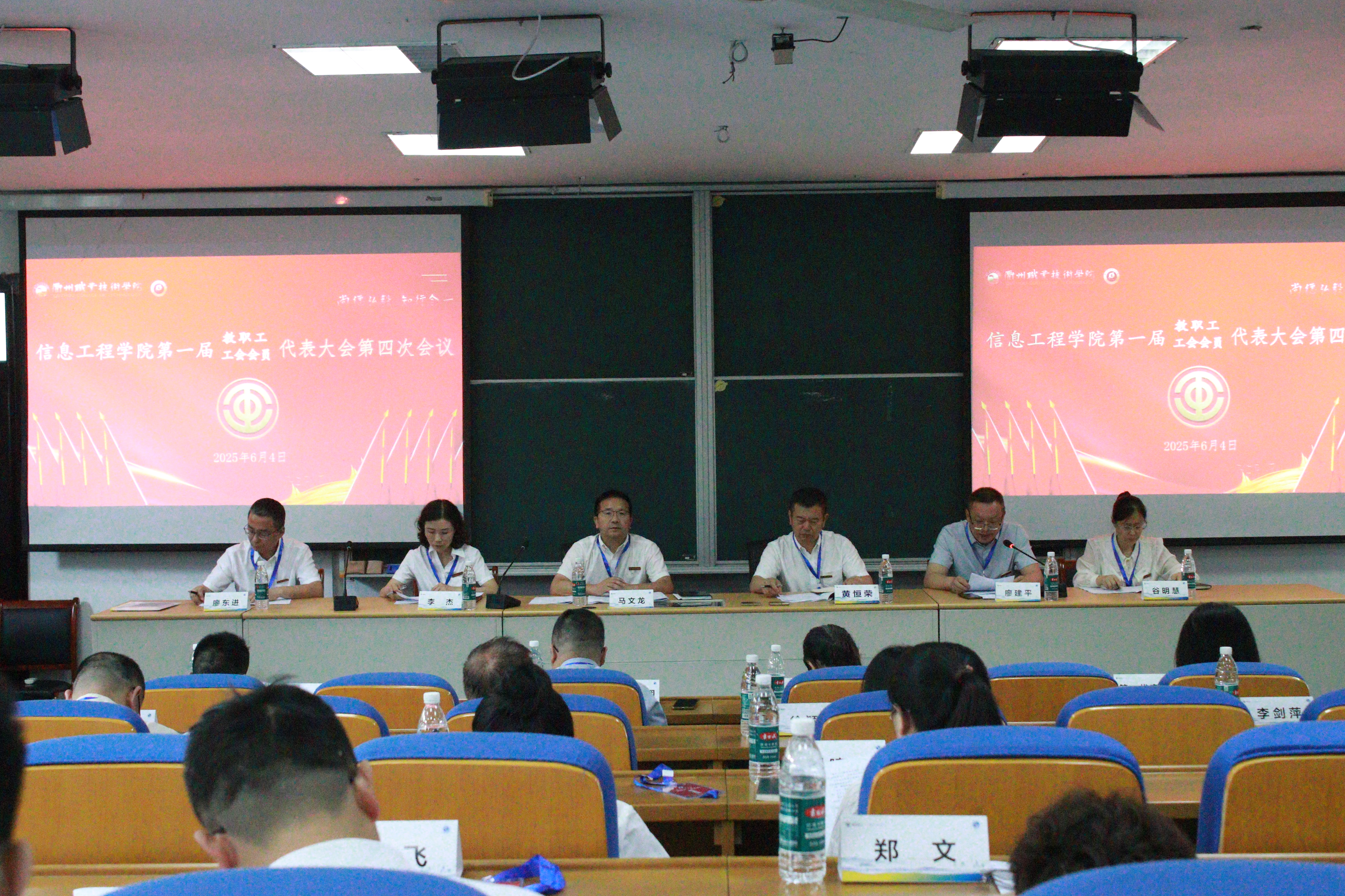 6月4日,信息工程学院第一届教职工暨工会会员代表大会第四次会议在阶东1-1召开。校工会常务副主席黄恒荣出席,学院党总支书记廖建平主持会议。27名正式代表中有23人出席会议。