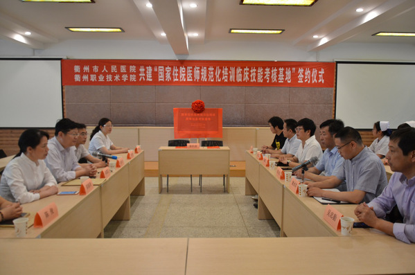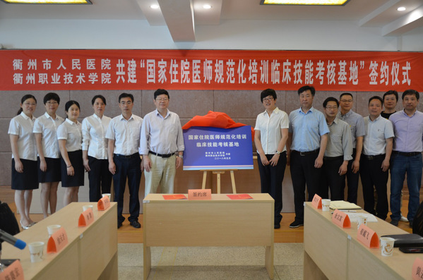 5月12日,我校在医学院实训楼多功能厅举行衢州市人民医院与我校共建“国家住院医师规范化培训临床技能考核基地”的签约和揭牌仪式。衢州市人民医院院长陈震宏、党委书记徐天才,我校党委书记崔戴飞、副校长黄云龙等双方领导和相关职能处室负责人,以及住院医师和学生代表共同见证了本次签约和揭牌仪式。仪式由医学院院长姚水洪主持。