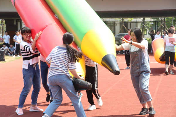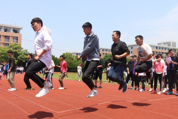 在崔戴飞宣布我校第十七届健康文化节开幕后,教职工联系寝室师生趣味运动会拉开序幕。本次运动会由集体跳绳、托球跑接力、巨型铅笔、龟兔赛跑四个项目组成,全校共有92个寝室,550多名师生参加了此次活动。比赛中,老师和同学们默契配合,活力四射的表现成为操场上一道道亮丽的风景线。场下更是热闹非凡,加油声、呐喊声一浪高过一浪。这种比赛形式集竞技与趣味于一体,为师生深入沟通提供了很好的机会,营造了温馨、和谐、活跃的校园文化氛围。大家纷纷表示,这次活动拉近了师生之间的距离,增进了师生之间的感情,是一次非常有意义的活动。
