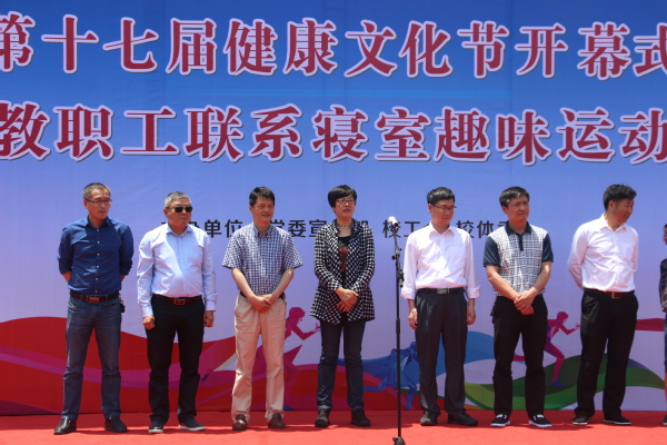 5月9日中午,我校第十七届健康文化节开幕式暨教职工联系寝室趣味运动会在田径场隆重举行。校党委书记崔戴飞,院长江爱民等校领导出席了开幕式。开幕式由党委委员、宣传部部长孔庆红主持。