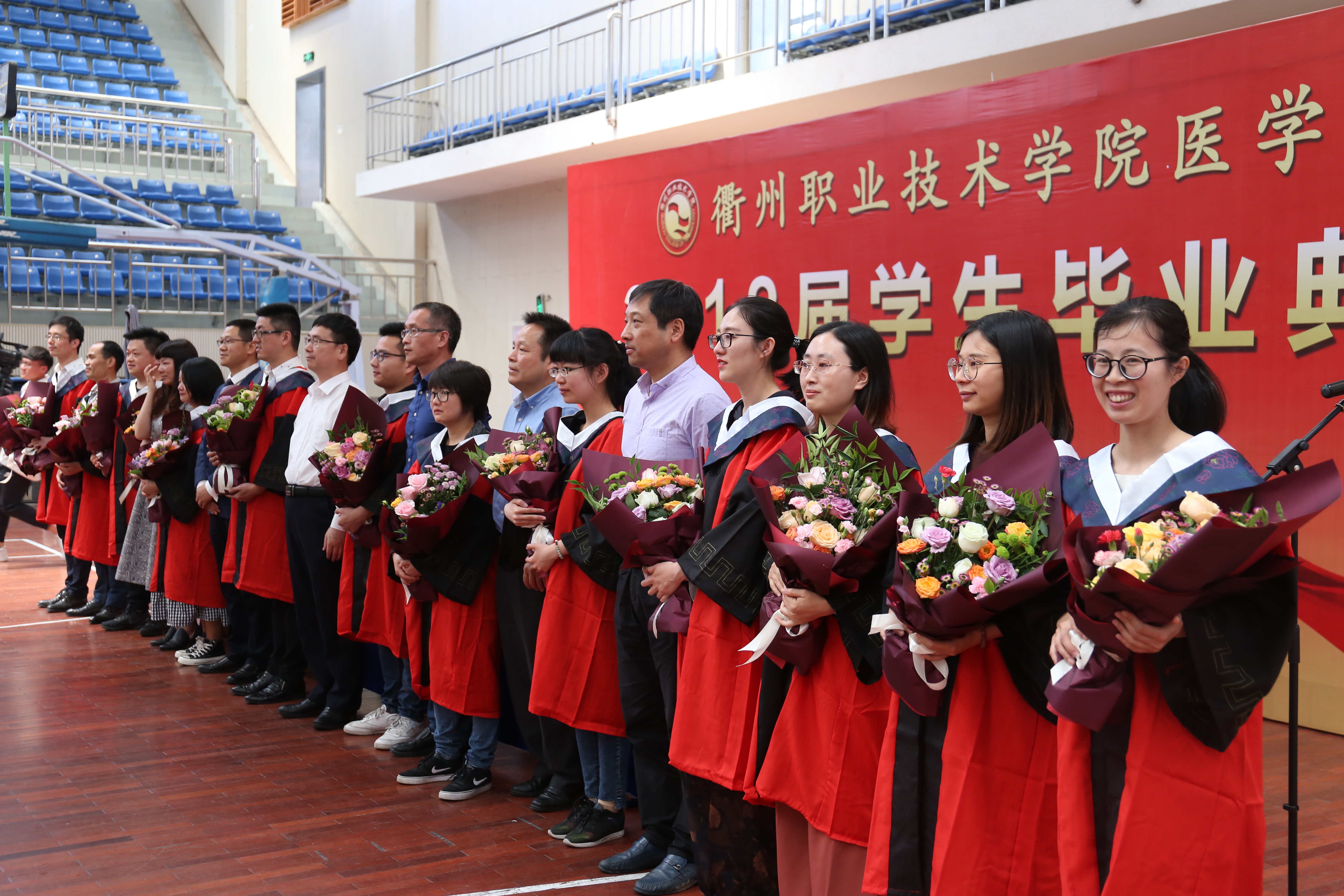 最后,班主任们为同学们送上视频祝福,深情地回忆了同学们在成长中的点滴进步和许多平凡的感动,并向同学们提出了殷切的期望。毕业生代表也为各班主任送上了美丽的鲜花,场面温馨感人,将毕业典礼推向高潮。