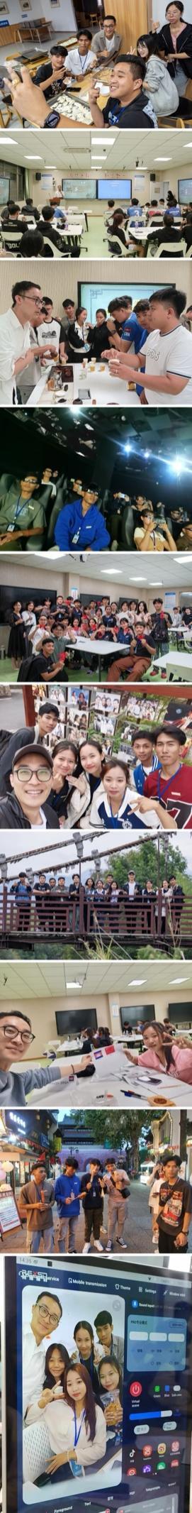 为使柬埔寨学生更好地了解中国文化,学校精心组织了一系列文化体验活动,韩老师也全程陪伴。他带着学生漫步水亭门历史街区,倾听青砖黛瓦间的历史故事;走进余东村农民画博物馆,领略中国民间艺术的独特魅力。此外,韩老师还与留学生们一起体验剪纸、包饺子、中国茶文化、八段锦等特色课程,感受中国传统美食、手工艺和养生之道。他用耐心和热心,在每一次的活动中都悄悄地拉近了与学生们彼此之间的距离,通过这些活动,柬埔寨学生对中国文化的了解更加深入,也对中国产生了浓厚的兴趣。