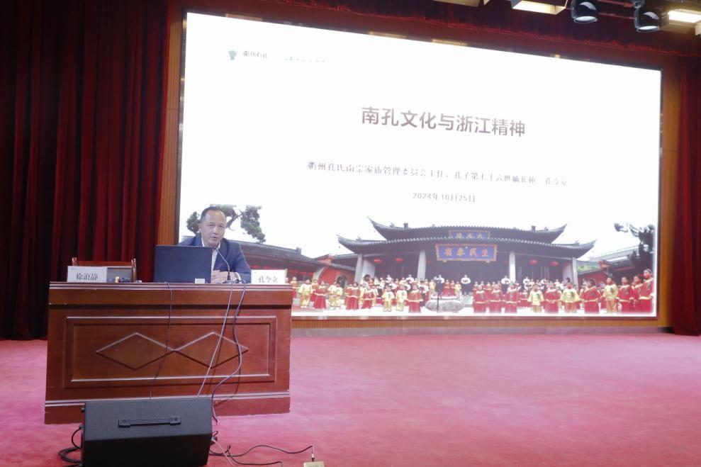 “当下我们研究和弘扬南孔文化意义何在?”10月25日,在衢州职业技术学院报告厅,孔子七十六代嫡长孙,衢州孔氏南宗家庙管委会主任孔令立受邀为学校师生作题为《南孔文化与浙江精神》的专题讲座。