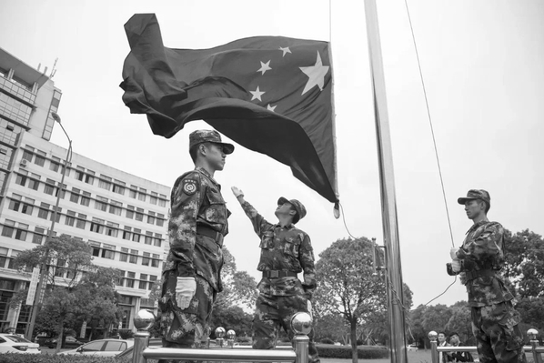 近日,衢州职业技术学院国旗护卫队又有了新鲜血液,42名新退役大一新生充实进来。在国旗下敬礼,成为这些新护旗手的入队第一课。据悉,该校国旗护卫队成立于一年前,由来自不同专业的退伍大学生组成,已成为学校强化大学生理想信念教育和增强大学生爱国意识的极好示范。